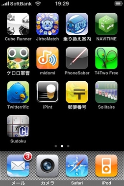 あとの3枚はホーム画面です。いくつかアプリをインス