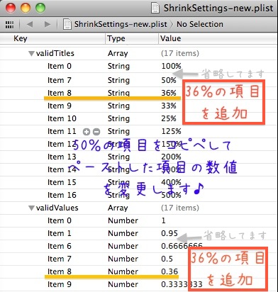 の中の ShrinkSettings.plist を Mac 側にコピーして それを開きます。