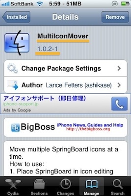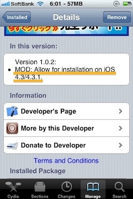 アップデートされて、MultiIconMover も iOS 4.3.1 に対応です(^^) 入れてる App が多い時ごっそり App を移動出来るのは便利ですね。 今朝は・・また早く起きたので、パパさんカーネル #22 の最終版を焼 いてみてましたです(^^) とっても良い感じになってますね〜 いつも ありがとうございます♪